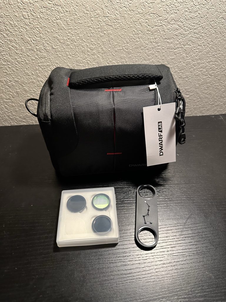 The Dwarf II’s basic package (Classic Edition) includes no accessories besides a microSD card and a well-designed carry bag that holds the Dwarf II, its tripod, and any additional necessary items.