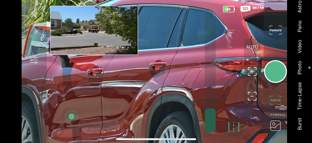 I appreciate how I can use my fingers to digitally zoom in either view, and it’s extremely easy to pan the whole thing around with the joystick. Think of it as kind of like a security camera with a better lens and the ability to point anywhere we want.
