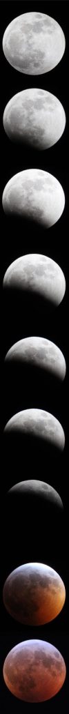 The best shots are often those of the eclipsed Moon with a DSLR/mirrorless camera and short focal length telescope or camera lens, showing the eclipsed Moon and normally-invisible stars around it in the background.