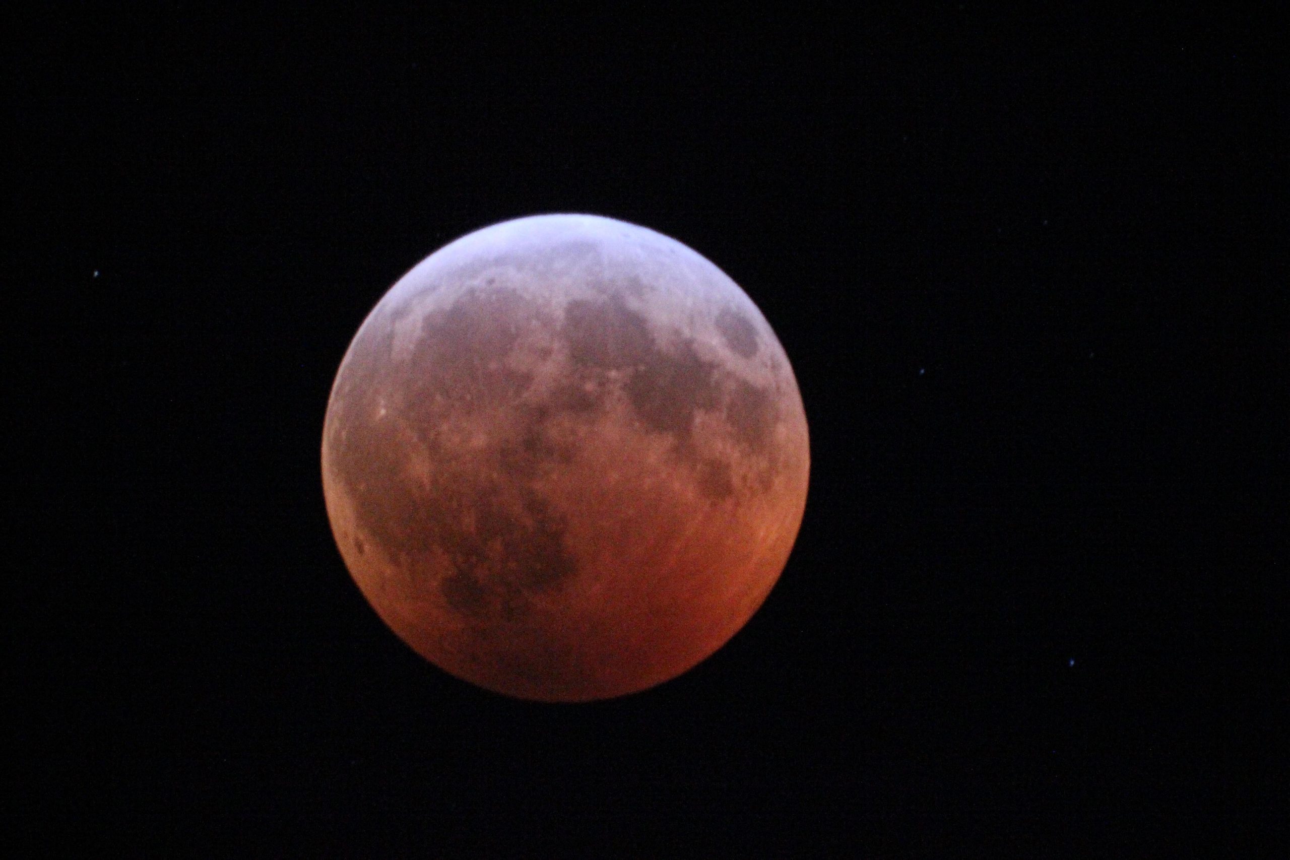 The best shots are often those of the eclipsed Moon with a DSLR/mirrorless camera and short focal length telescope or camera lens, showing the eclipsed Moon and normally-invisible stars around it in the background.