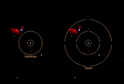 Telrad finder charts take advantage of these rings. These charts are usually specific to a limited set of targets. The chart shows you where to start and how much to move the scope for each hop as you move the rings across the stars.